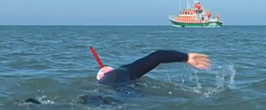 Afin de mieux faire connaître les buts et actions et récolter des fonds pour l'association "Les rêves de la Luciole", le nageur Frédéric Péron à relié Notre-Dame-de-Monts à l'Ile d'Yeu ce lundi 8 juillet de 9h15 à 15h. Reportage à son arrivée.