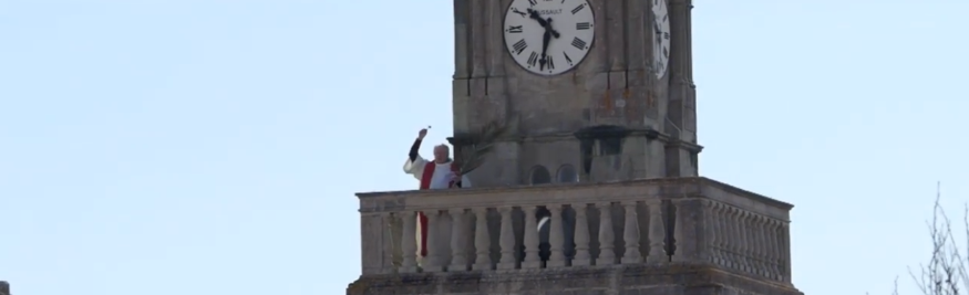 C'était dimanche 5 avril dernier, Mgr Dominique Rézeau, le curé de la paroisse de l'Ile d'Yeu célébrait la bénédiction des rameaux du haut de son clocher. Une belle occasion pour Paul Henry de sortir sa caméra et immortaliser ce moment inédit :