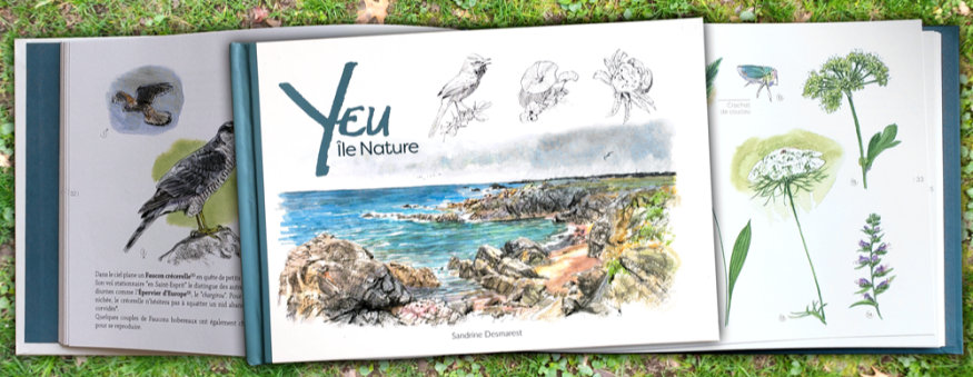 Fruit d'un travail de trois longues années, le livre "Yeu île nature" recense certaines espèces d'oiseaux, de plantes et d'insectes présents sur l'Ile d'Yeu. Son autrice Sandrine Desmarest, guide nature ilaise et admiratrice des oiseaux, nous présente avec bonheur son premier ouvrage édité par la LPO Vendée et illustré par l'aquarelliste Benoît Perrotin. Grâce à ses 80 pages, ses 290 illustrations et ses textes poétiques, Sandrine partage sa curiosité naturaliste et dresse le portrait d'une île préservée, sauvage et pleine de vie.