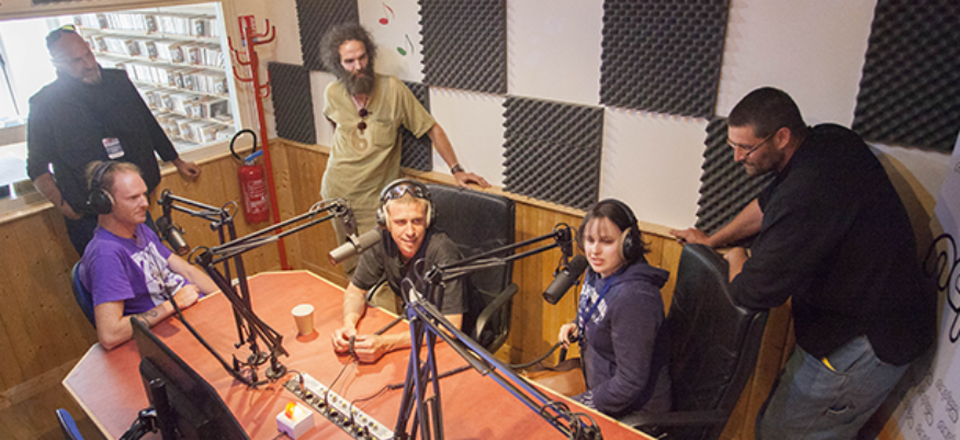 Le groupe vendéen La Vaguabonde au complet dans les studios pour leur concert à Viens Dans Mon Ile 2016.