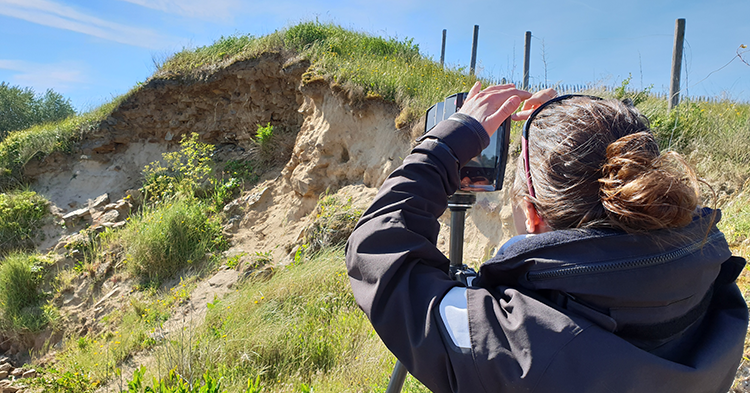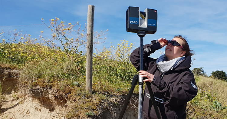 Ce dispositif permettra à tout un chacun, grâce à une application pour smartphone bientôt disponible, de contribuer à la surveillance de l'érosion côtière et determiner les facteurs qui accélèrent ce phénomène sur plusieurs sites de l'île. Ces dix lieux, où la dune nécessite une attention particulière, ont été choisis en concertation avec la Mairie de l'île d'Yeu car se trouvant à proximité d'infrastructures. Ils doivent être auparavant numérisés en 3D grâce à un scanner laser (photo ci-dessous).